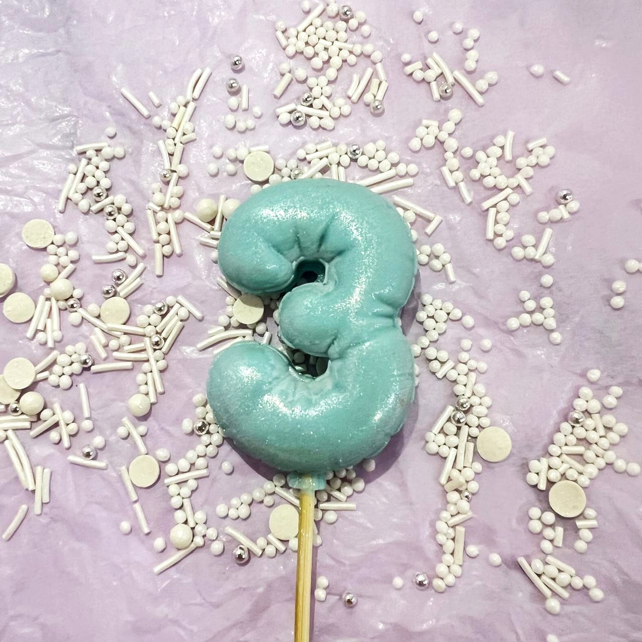 Фигурка из шоколадной глазури "Цифра-Шарик 3" голубая