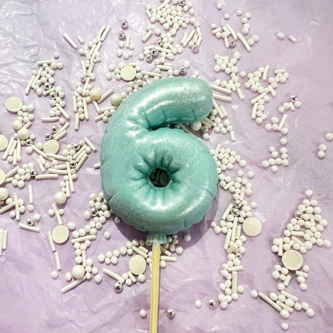 Фигурка из шоколадной глазури "Цифра-Шарик 6" голубая