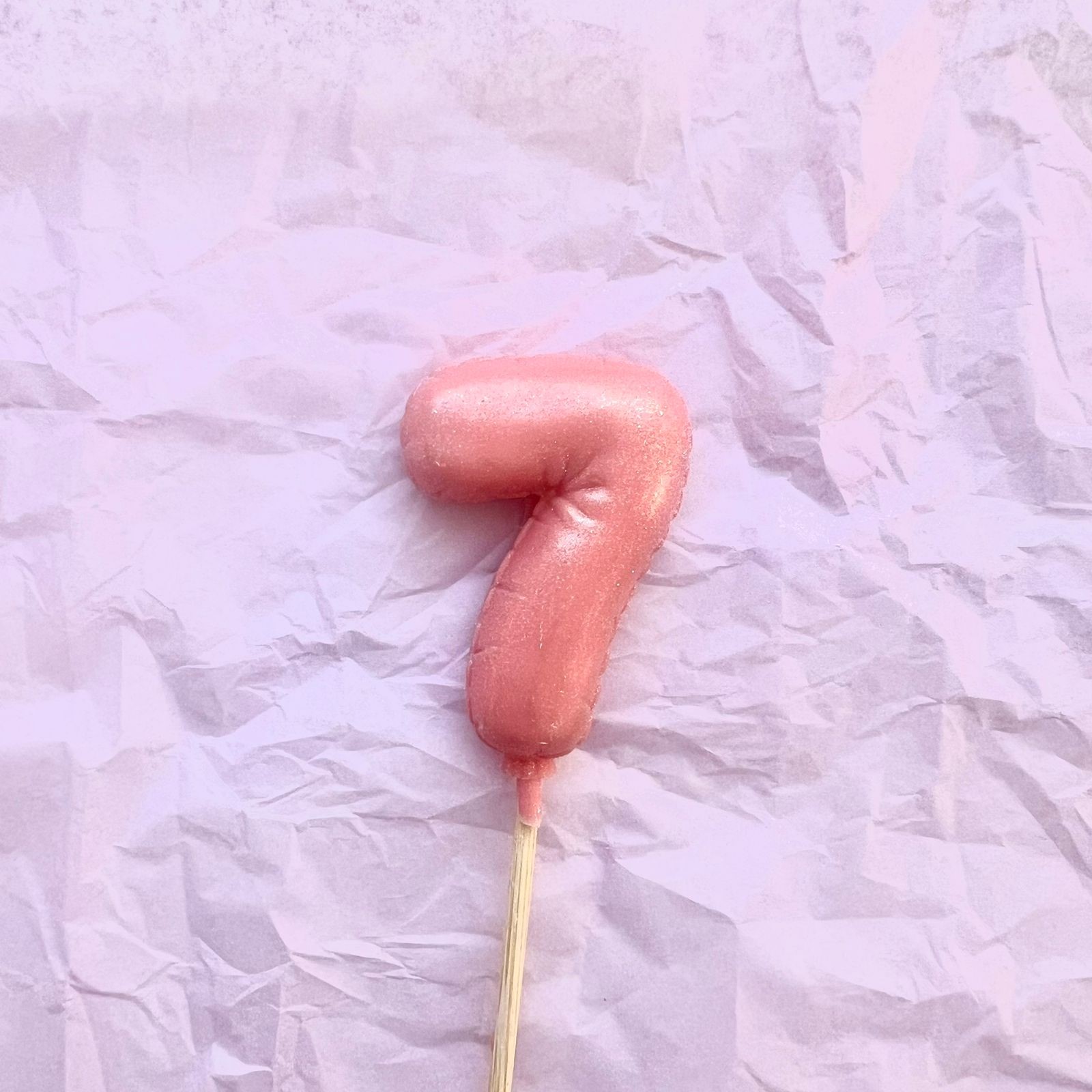 Фигурка из шоколадной глазури "Цифра-Шарик 7" розовая