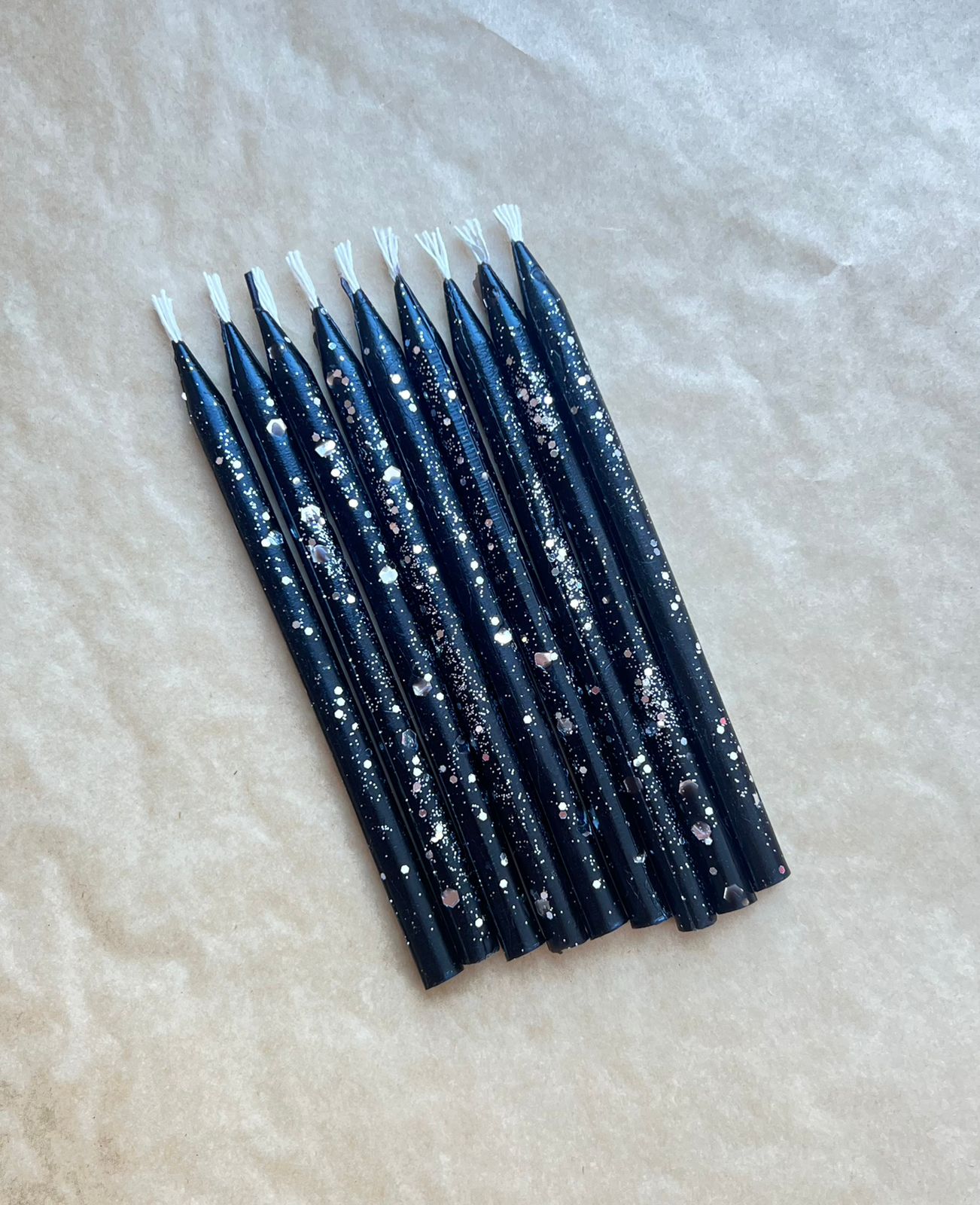 Свечи для торта "Черные с серебром" 10 см, 9 шт