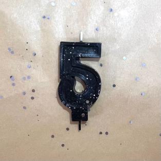Свеча для торта восковая "Гламур", "Цифра 5" черная с серебром100 руб.Свечи изготовлены вручную из 100% пчелиного воска и добавления красителей.Высота свечи - 5,5см.