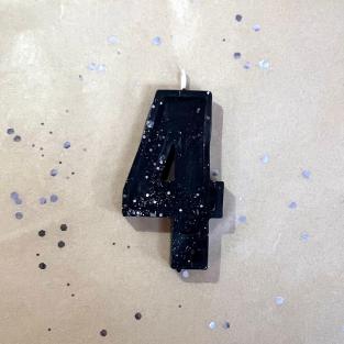 Свеча для торта восковая "Гламур", "Цифра 4" черная с серебром100 руб.Свечи изготовлены вручную из 100% пчелиного воска и добавления красителей.Высота свечи - 5,5см.