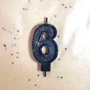 Свеча для торта восковая "Гламур", "Цифра 6" черная с серебром100 руб.Свечи изготовлены вручную из 100% пчелиного воска и добавления красителей.Высота свечи - 5,5см.