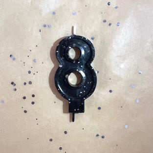 Свеча для торта восковая "Гламур", "Цифра 8" черная с серебром100 руб.Свечи изготовлены вручную из 100% пчелиного воска и добавления красителей.Высота свечи - 5,5см.