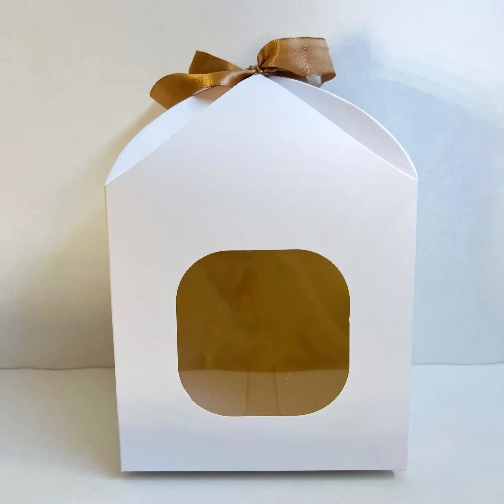Коробка для кулича 14 см*14 см*19,5 см с лентой и окном белая
