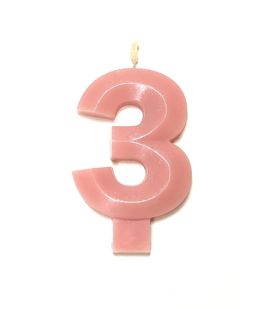 Свеча для торта восковая "Грани", "Цифра 3", розовый перламутр